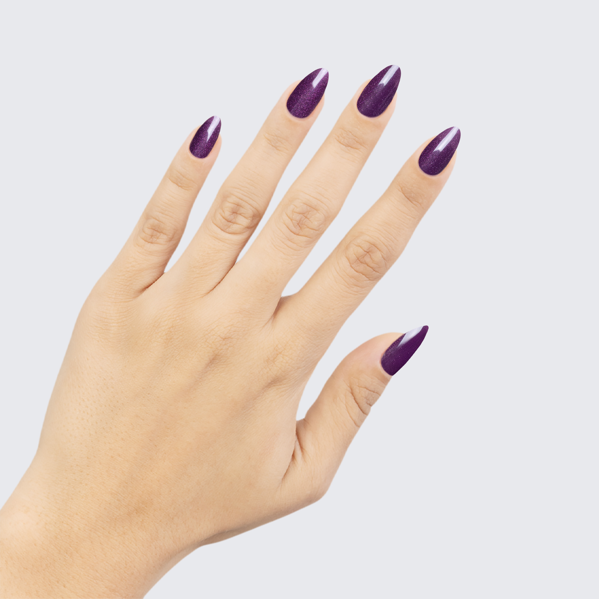 Purple. Dark. Shimmer. Semi transparent. Cool undertone.