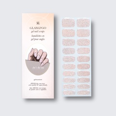 Our GLAM & GO gel nail wraps ensure that no matter how complex your chosen nail design, the application process remains incredibly simple. Our GLAM & GO gel nail wraps require no glue, base coat, or top coat—just peel them off the packaging, apply them to your nail, trim to size, cure twice, and voilà!